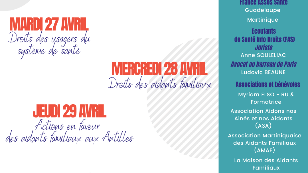 - le 29 avril: Actions en faveur des aidants familiaux aux Antilles